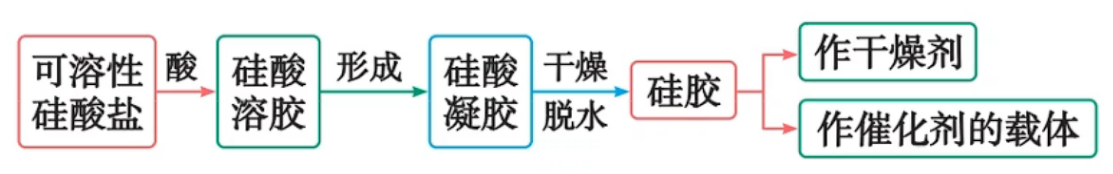 • 硅酸浓度大时在水中易聚合形成透明、胶冻状的硅酸凝胶,硅酸凝胶经干燥脱水后得到多孔的硅酸干凝胶,成为“硅胶”